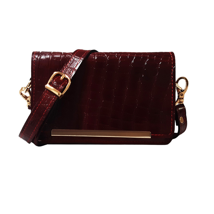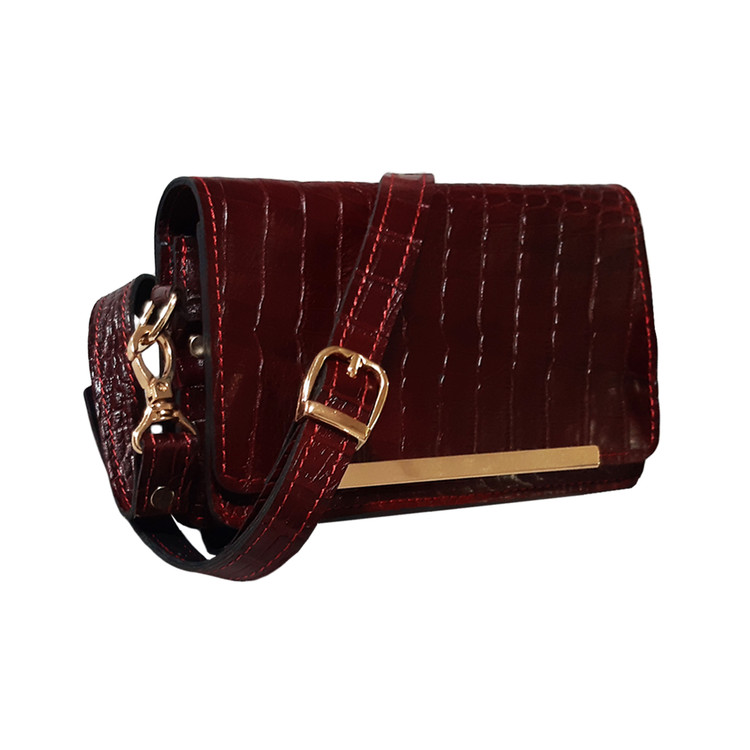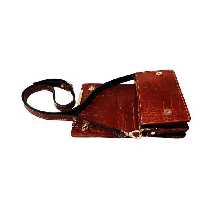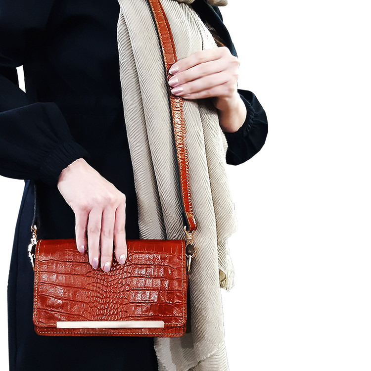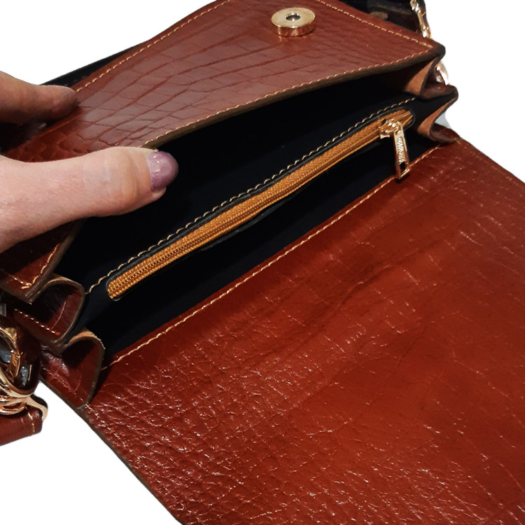 کیف دوشی زنانه تمام چرم گاوی طرح کروکودیلی مدل لارا کد ۷۴۴