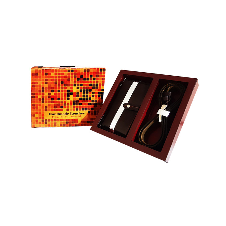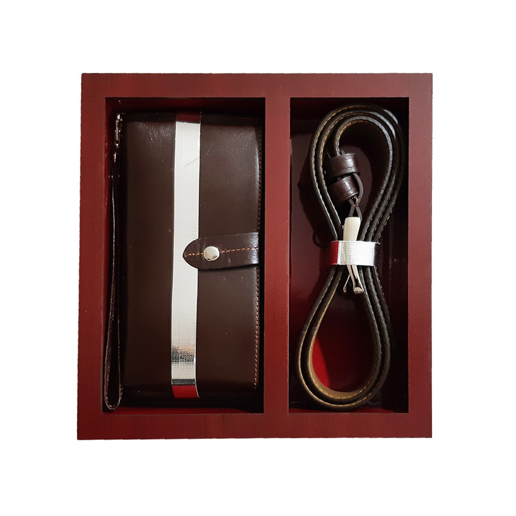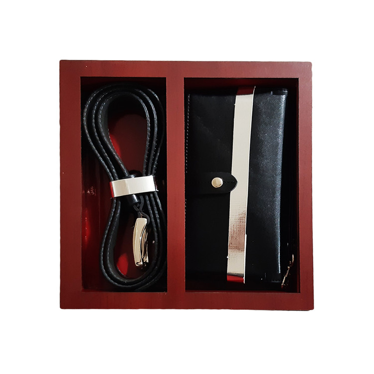 ست دو تکه هدیه مردانه تمام چرم گاوی و جعبه چوبی کد ۷۷۷