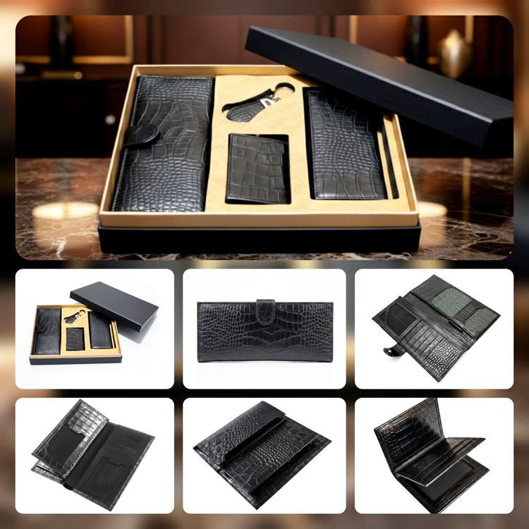 ست هدیه ۴ تکه مردانه تمام چرم گاوی کروکو مدل امید
