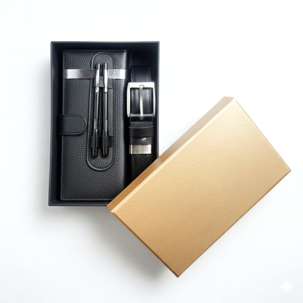 رنگهای مشکی و عسلی این ست، ظاهر شیک و مردانهای به آن داده که برای هدیه سازمانی، کادوی تولد، یا همکاری عمده با فروشگاههای چرم بسیار مناسب است.