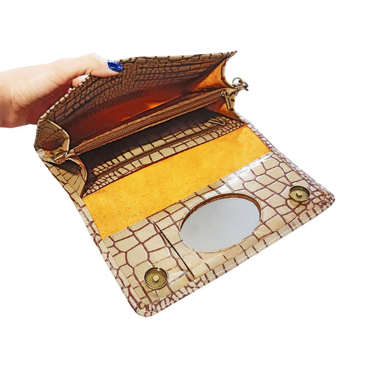 کیف دستی و دوشی مدل ملانی طرح شب مجلسی زنانه آینه دار طرح روکو تمام چرم گاوی کد ۷۴۲