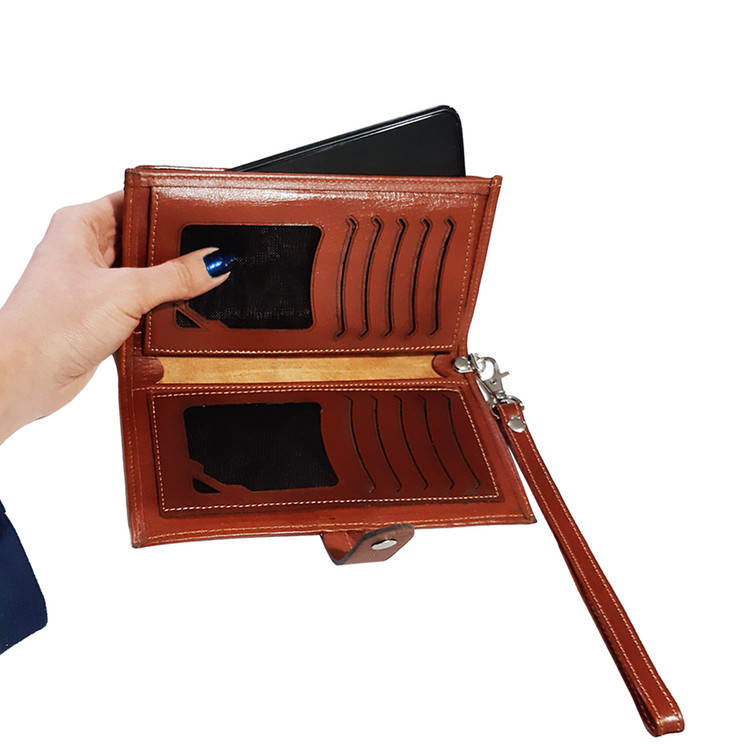 دارای چندین محل مخصوص موبایل و مخفظه زیپ دار و چندین محفظه مختص کارت و مدارک و اسکناس و البوم