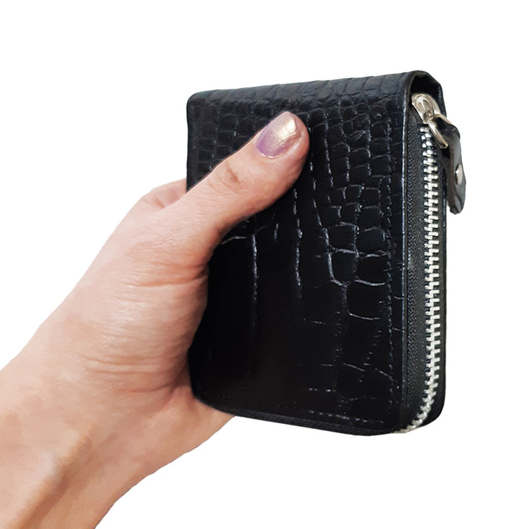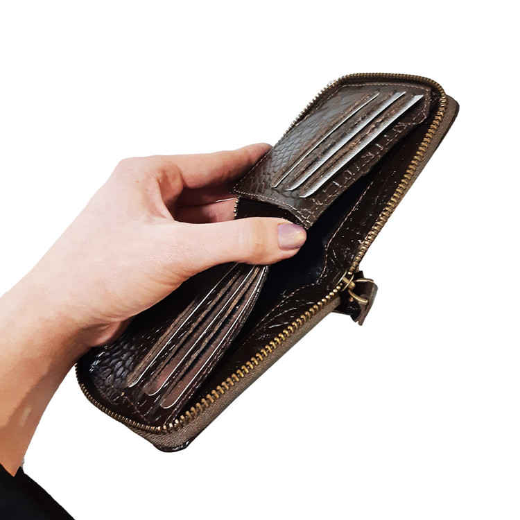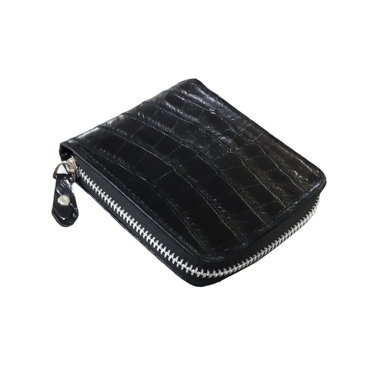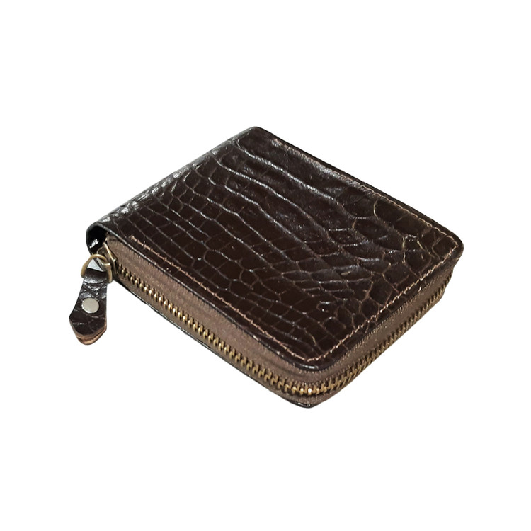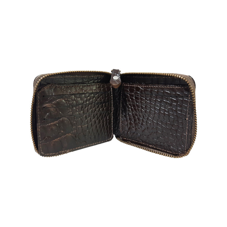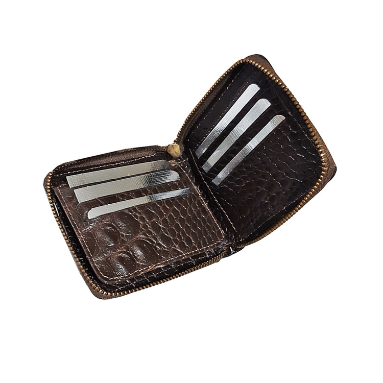 تولید و فروش عمده کیف پول جیبی دور زیپ چرم طبیعی طرح کروکودیل با جای اسکناس و چندین کارت و مدارک