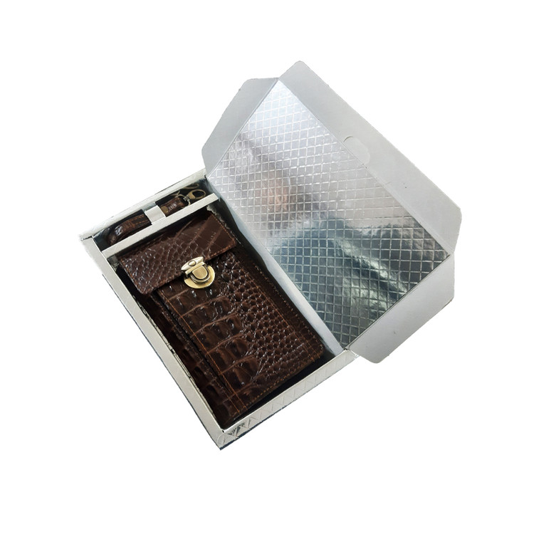 دارای محل مخصوص موبایل و چندین محفظه مختلف مخصوص مدارک، کارت، اسکناس، پاور بانک و غیره