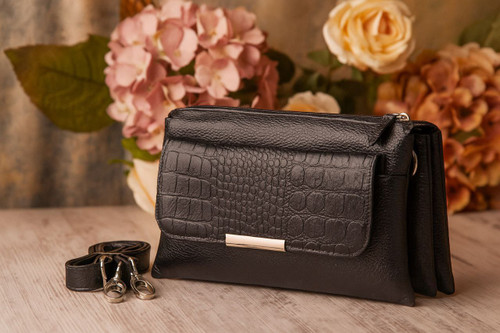 کیف دوشی زنانه تمام چرم طبیعی طرح کروکودیلی مدل لارا کد ۷۴۴ناموجود
